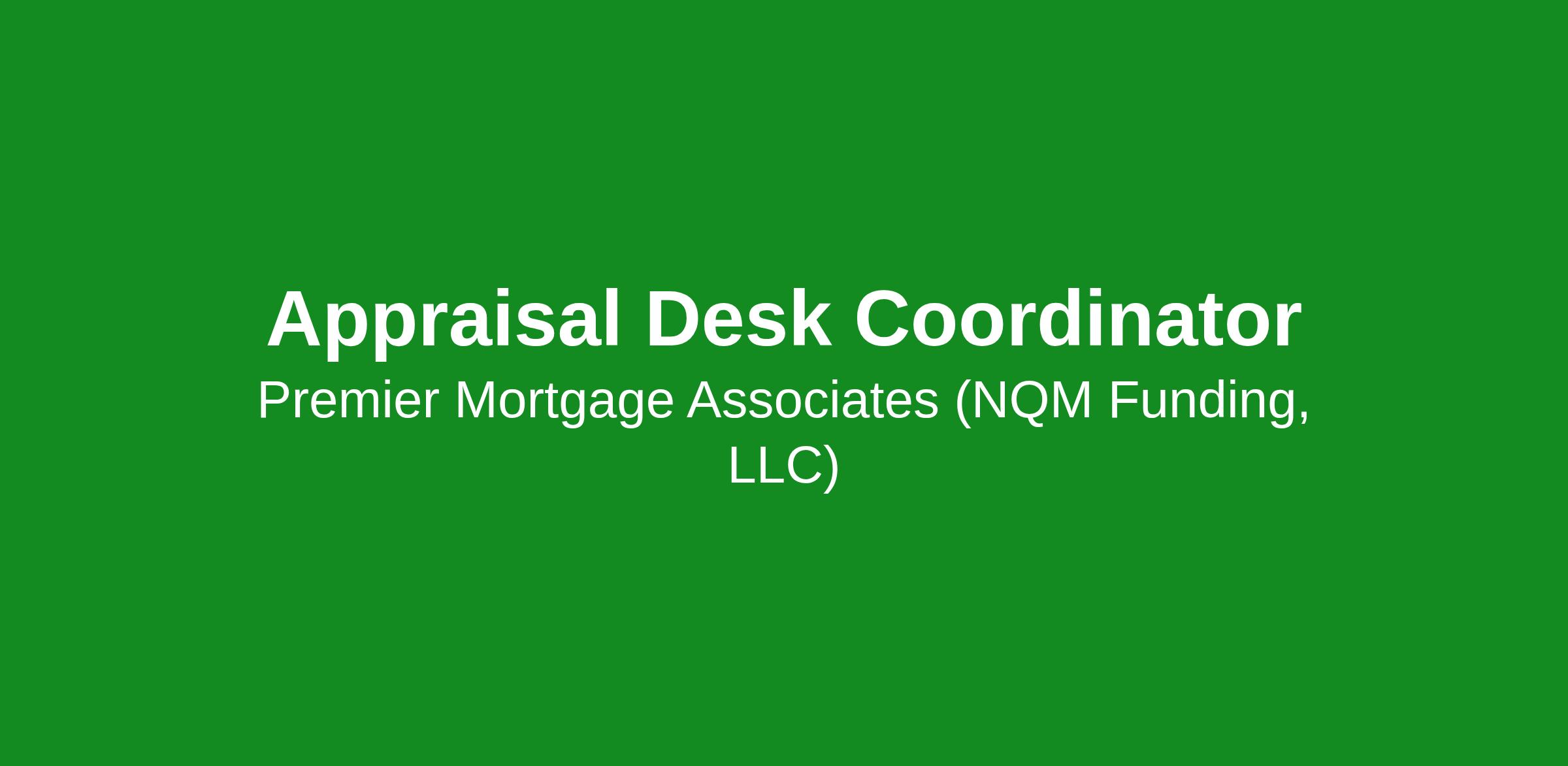 Premier Mortgage Associates (NQM Funding, LLC) is seeking an experienced Appraisal Desk Coordinator to support full-cycle appraisal management within its compliance and retail lending division. This fully remote role is designed for professionals with prior Appraisal Desk or AMC experience who are comfortable managing high-volume pipelines with strong attention to detail and regulatory precision.