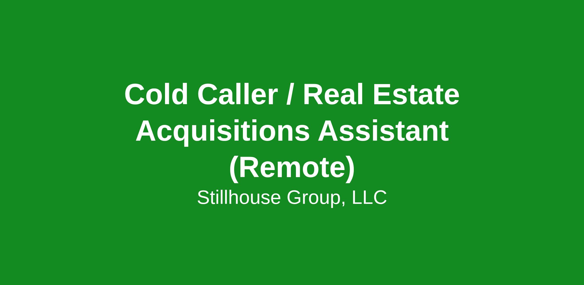 Stillhouse Group, LLC is a real estate investment company seeking a Cold Caller / Acquisitions Assistant to support off-market deal sourcing. This role focuses on outbound calling to property owners to identify potential sellers and pass qualified opportunities to the acquisitions team.