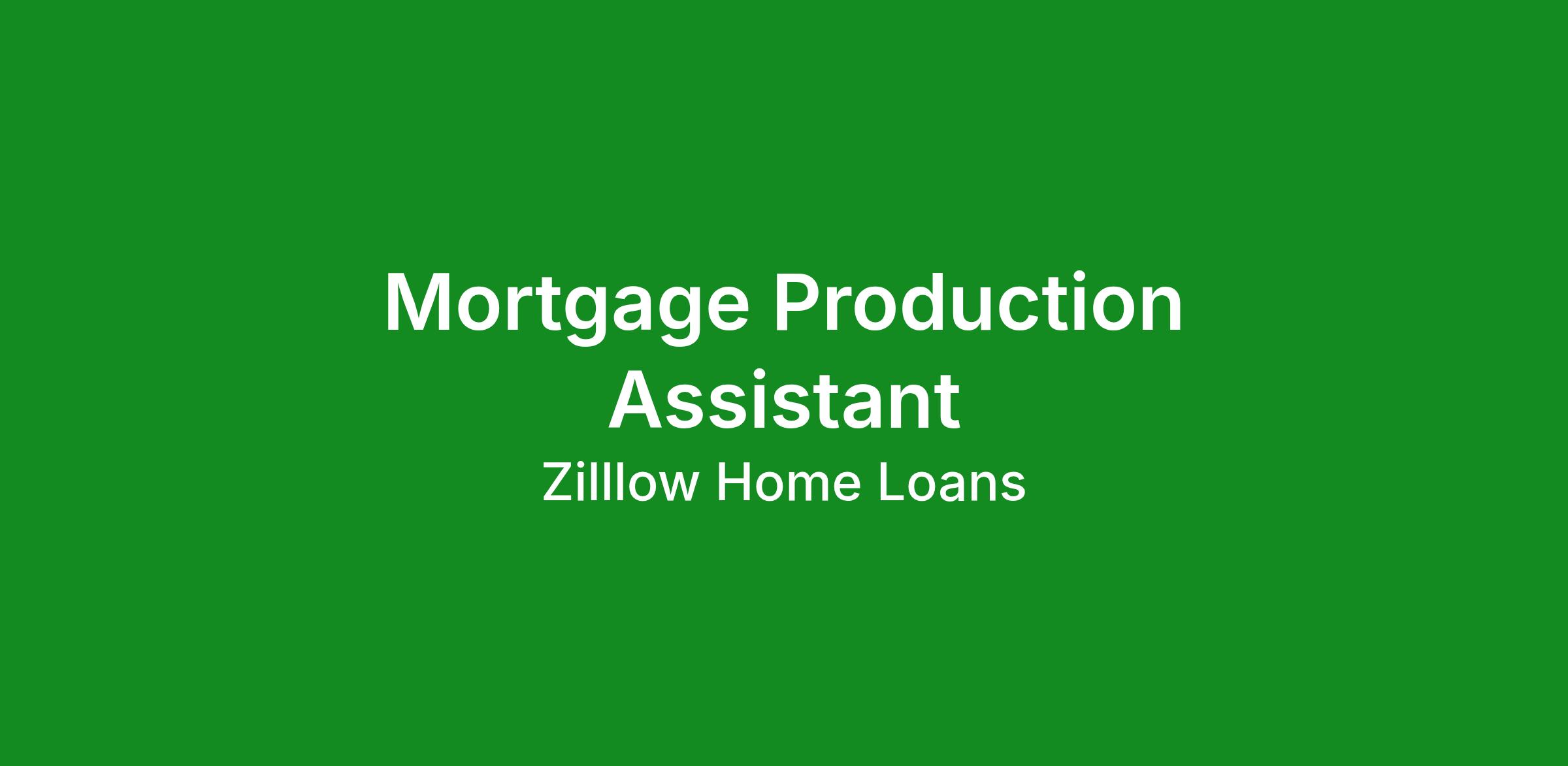 Zillow Home Loans is seeking a Mortgage Production Assistant to support loan processing and underwriting workflows within a fast-paced lending environment. This role focuses on reviewing loan files, ensuring documentation accuracy, and supporting loan officers to keep applications moving efficiently through the pipeline.