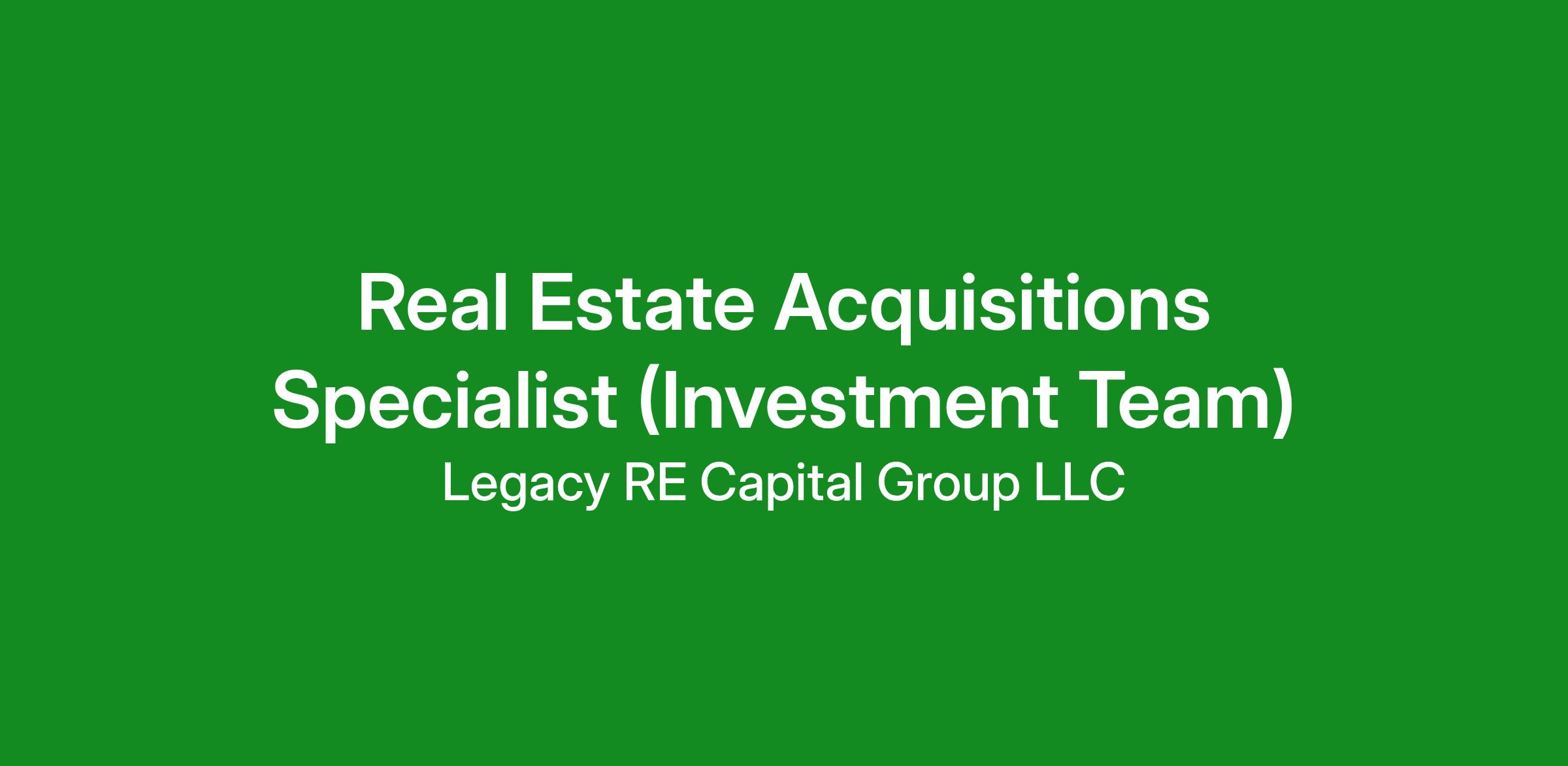 Legacy RE Capital Group LLC is seeking a Real Estate Acquisitions Specialist to join its growing real estate investment team. This role focuses on identifying, evaluating, and negotiating residential real estate opportunities that align with the company’s acquisition strategy.