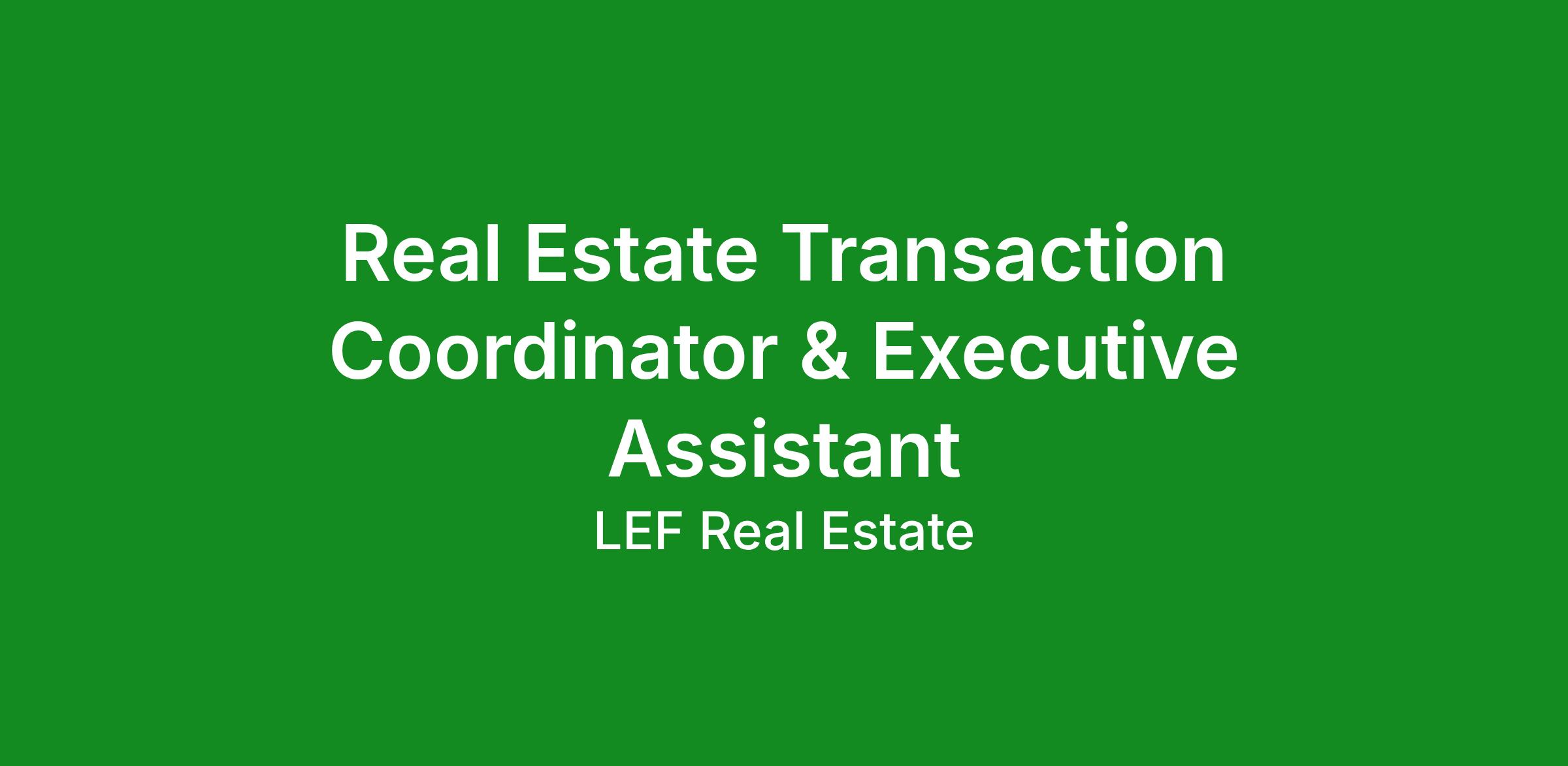 LEF Real Estate is seeking a Real Estate Transaction Coordinator & Executive Assistant to support transaction management and daily administrative operations. This role combines transaction coordination with executive support responsibilities, helping ensure deals move smoothly from contract to closing while maintaining organized systems and communication.