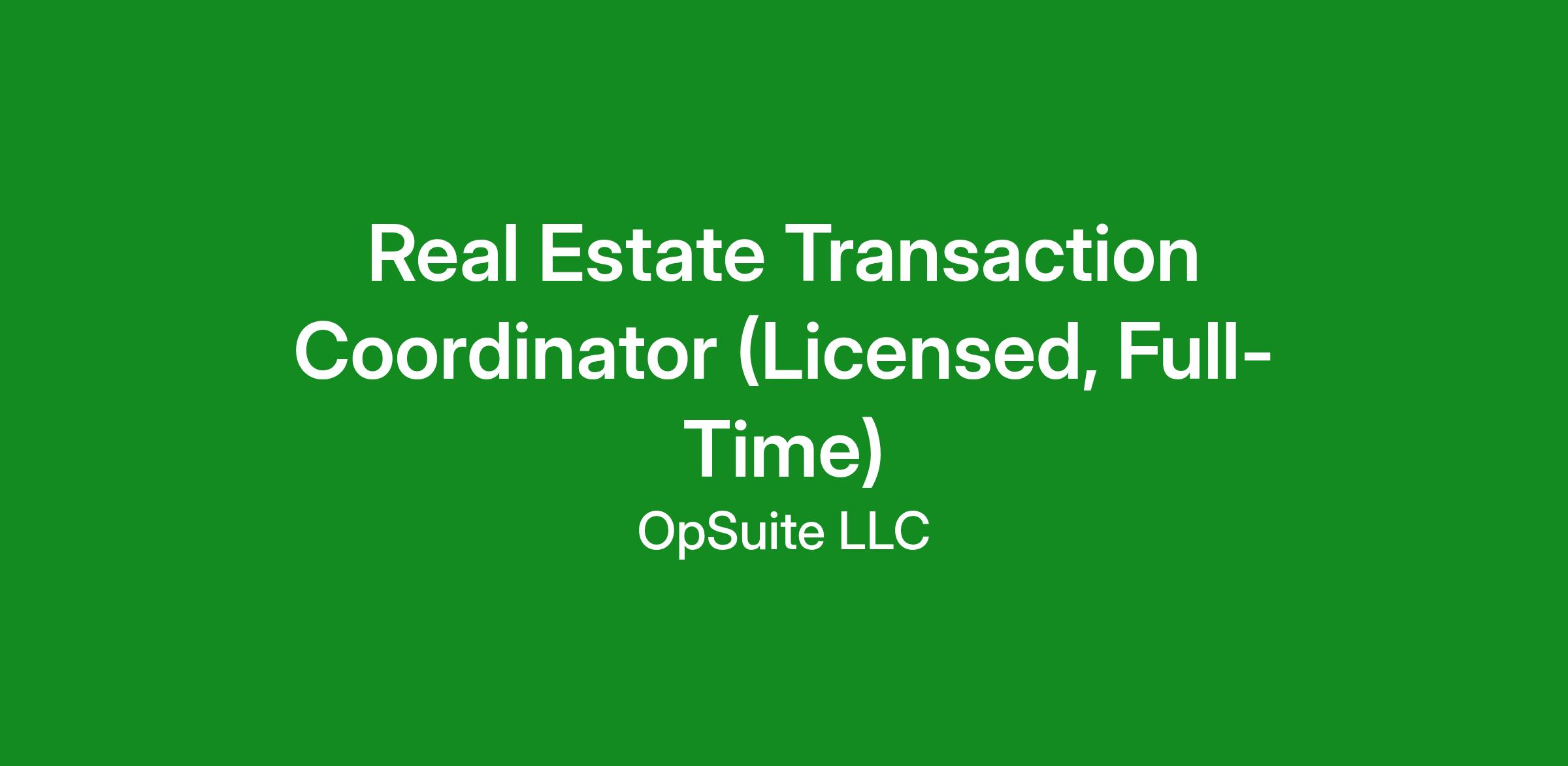 OpSuite LLC is seeking a licensed Real Estate Transaction Coordinator to manage residential real estate transactions from contract through closing. This full-time, remote role supports agents by keeping files compliant, timelines on track, and all parties informed throughout the transaction lifecycle.