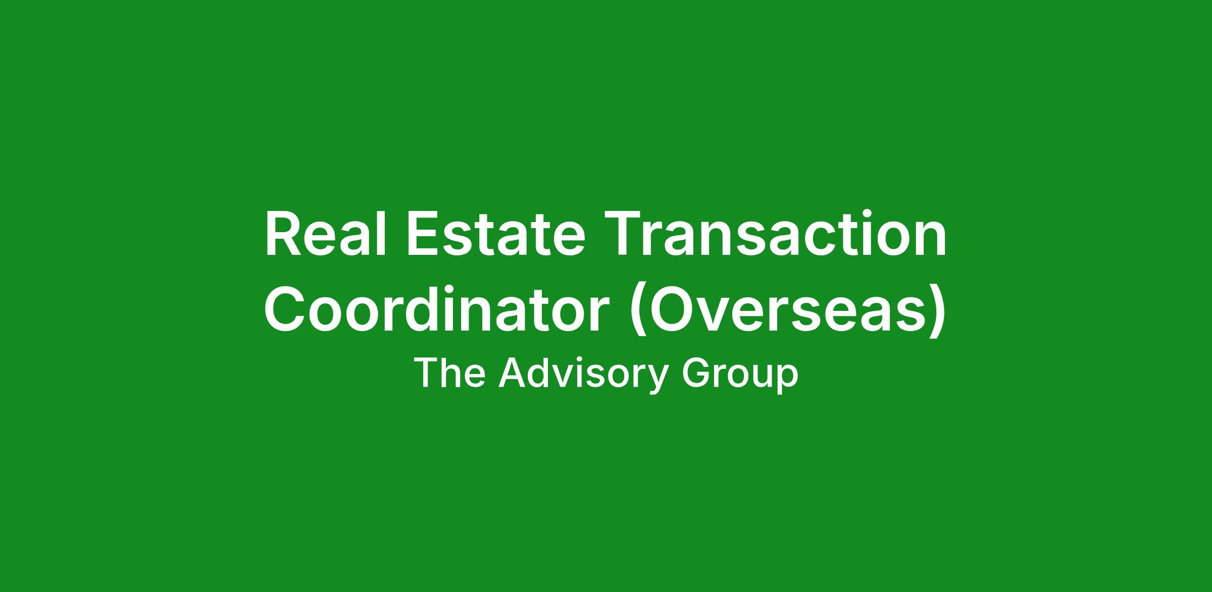 The Advisory Group is seeking a Real Estate Transaction Coordinator to support real estate transactions from contract execution through closing while maintaining organized systems and communication across all parties involved.