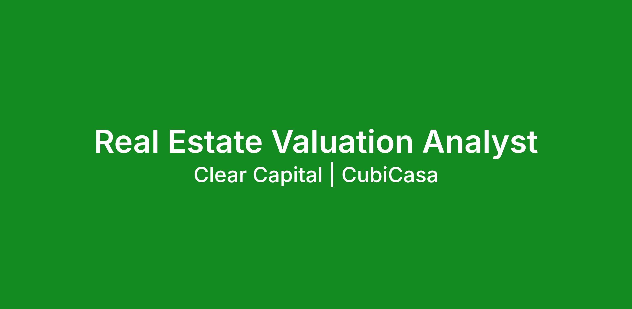 Clear Capital is hiring a full-time Real Estate Valuation Analyst to support residential valuation and property data review operations. This role works with real estate professionals nationwide to review, analyze, and validate property valuation reports to ensure they meet company and client quality standards.